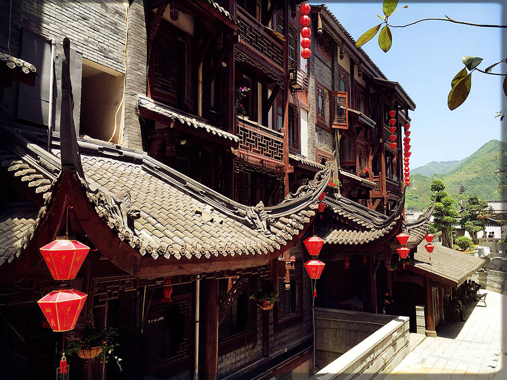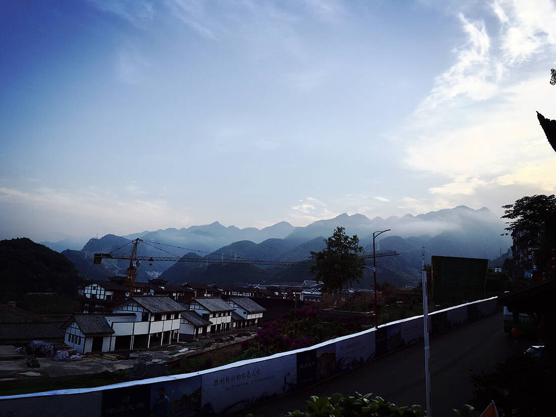 茅台镇杨柳湾街一景,远山白云脚下,这里仿佛世外桃源。