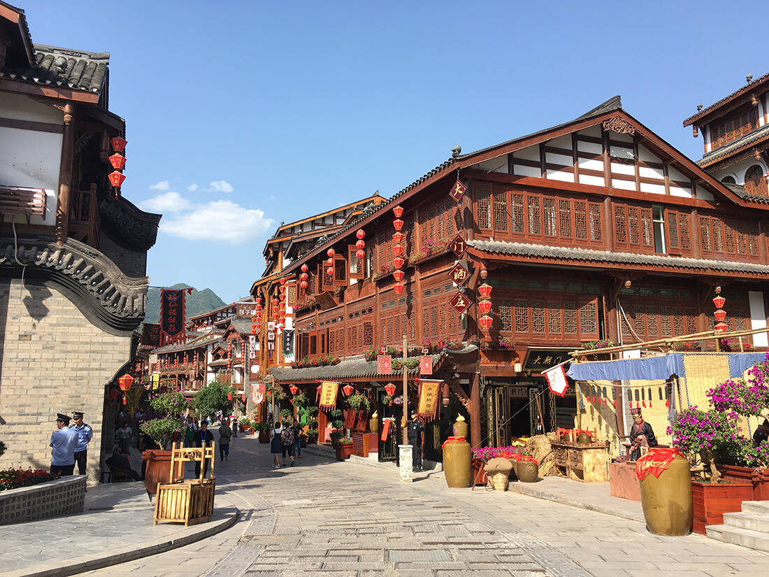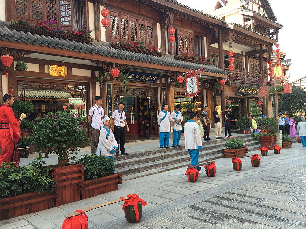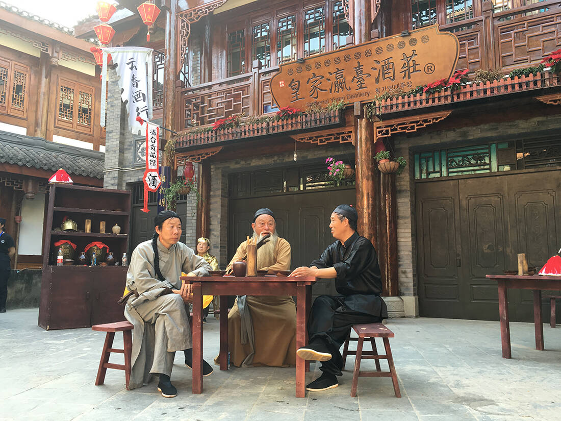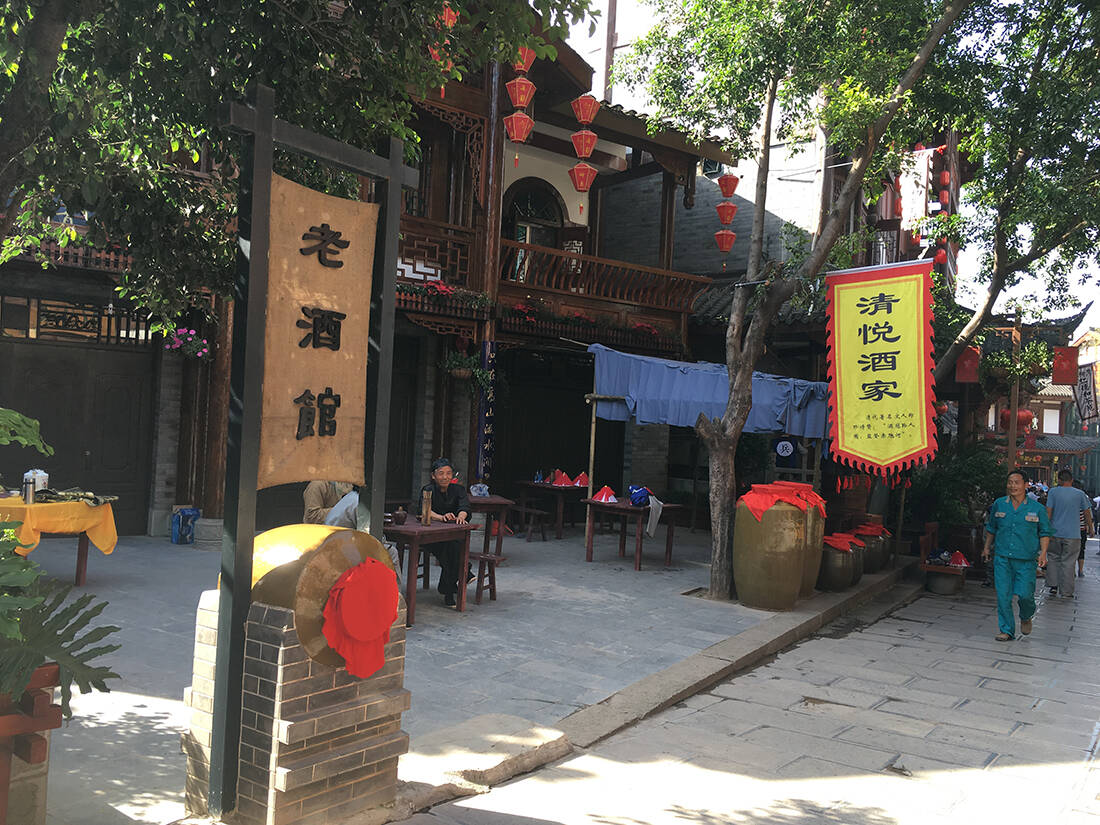 茅台镇杨柳湾街的商户们全都身穿古衣,扮作古人,走进这里,仿佛一瞬间穿越到了古代酿酒小镇。