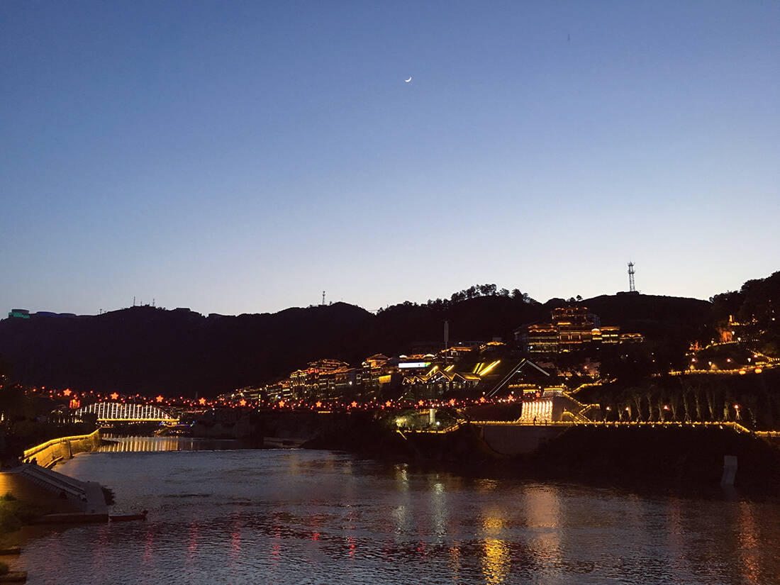 茅台镇位于仁怀市赤水河畔,历来是黔北名镇,古有“川盐走贵州,秦商聚茅台”的写照,茅台镇风景秀丽,是中国酱酒圣地,域内白酒业兴盛,1915年茅台酒在巴拿马万国博览会上荣获金奖;1935年中国工农红军长征在茅台四渡赤水。茅台镇集古盐文化、长征文化和酒文化于一体,被誉为“中国第一酒镇”。一弯新月下的茅台镇灯光点点,赤水河静静流淌。