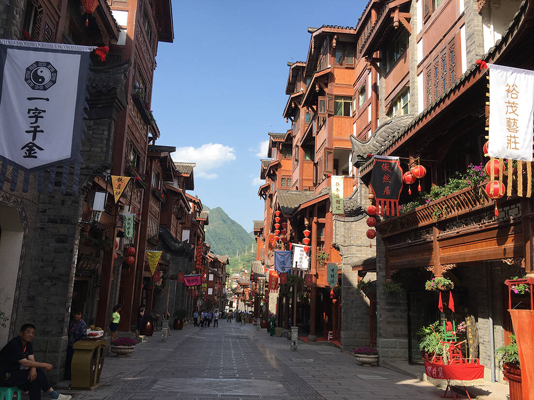 茅台镇杨柳湾街处处古色古香,酒旗飘飘。从古至今,这里都盛产美酒。