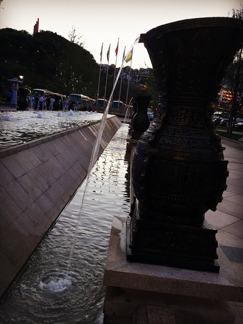 茅台镇的喷泉都做成了“酒壶”形状,整个小镇酒香四溢。