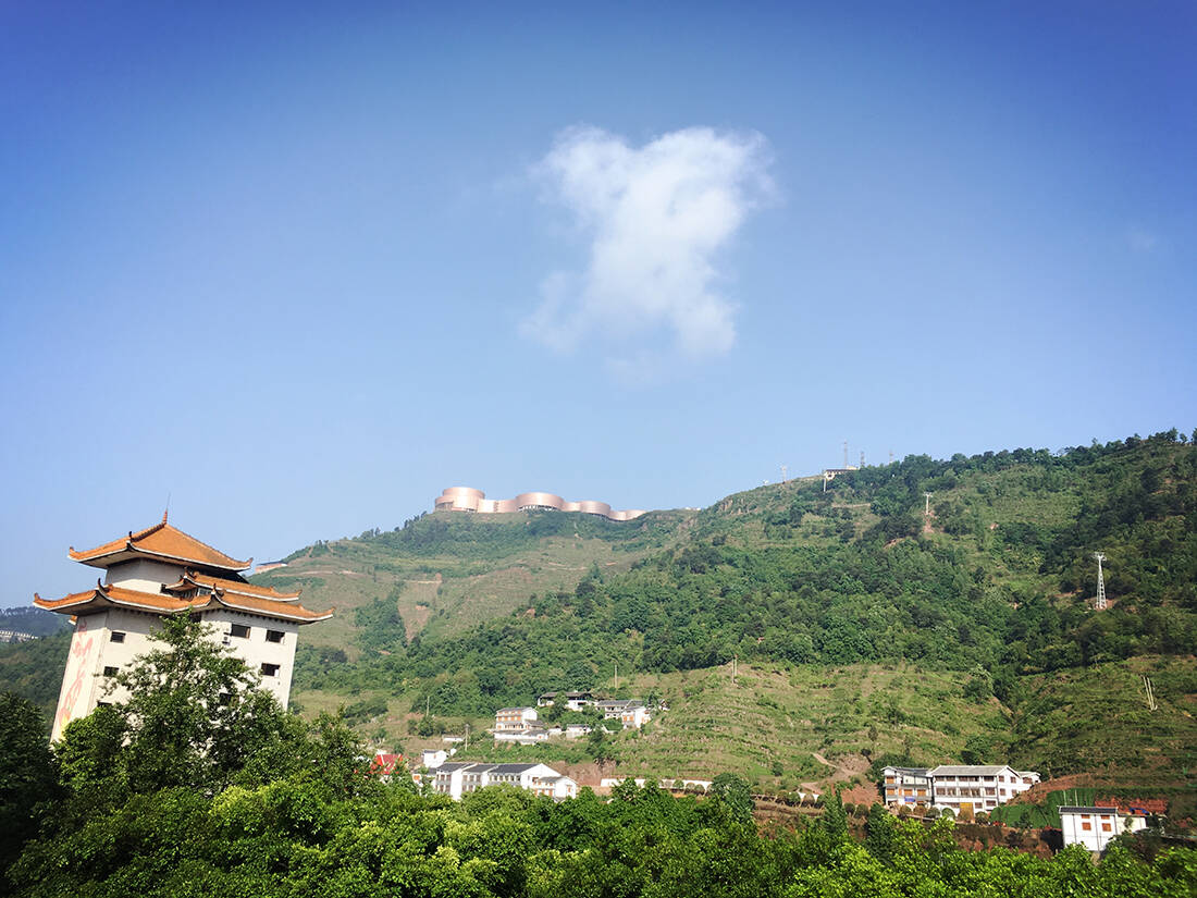 晴朗的时候,茅台镇青山苍翠,云挂山间。